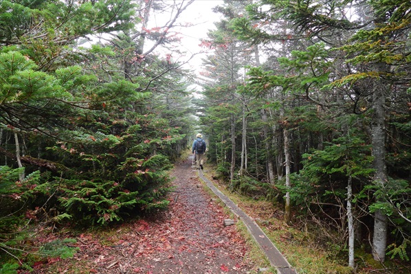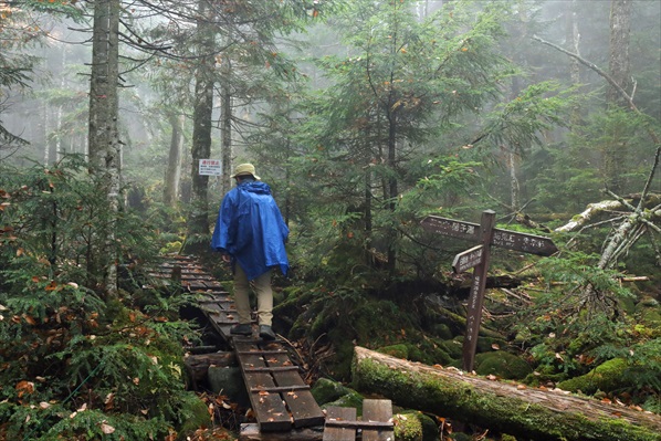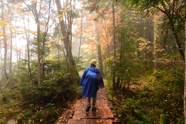 高見の森 | 濡れた木道歩きも気を抜けない | |||