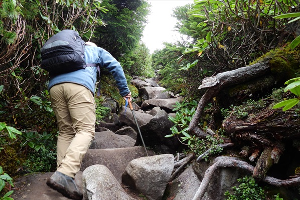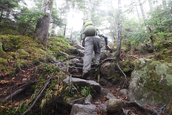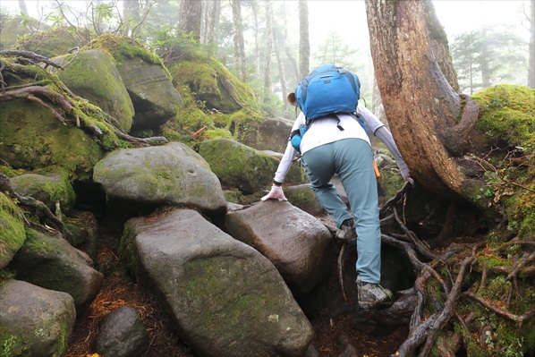 雨で濡れた岩は滑るので両手フル活用で慎重に!慎重に! | ||||