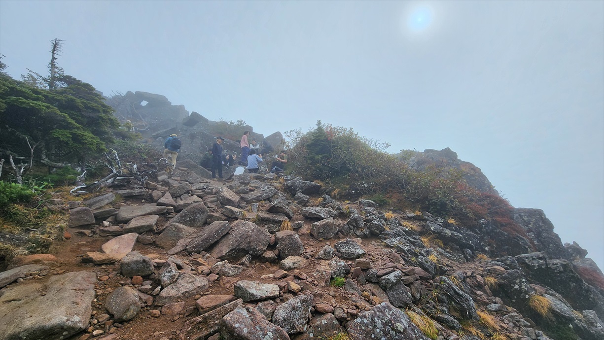 ガスガスでなんも見えん中山展望台 | 展望台はサッサと退散して高見石小屋へ | |||
