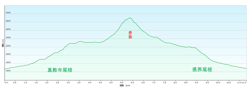 | 赤岳・真教寺尾根&県界尾根高低図 | ||||