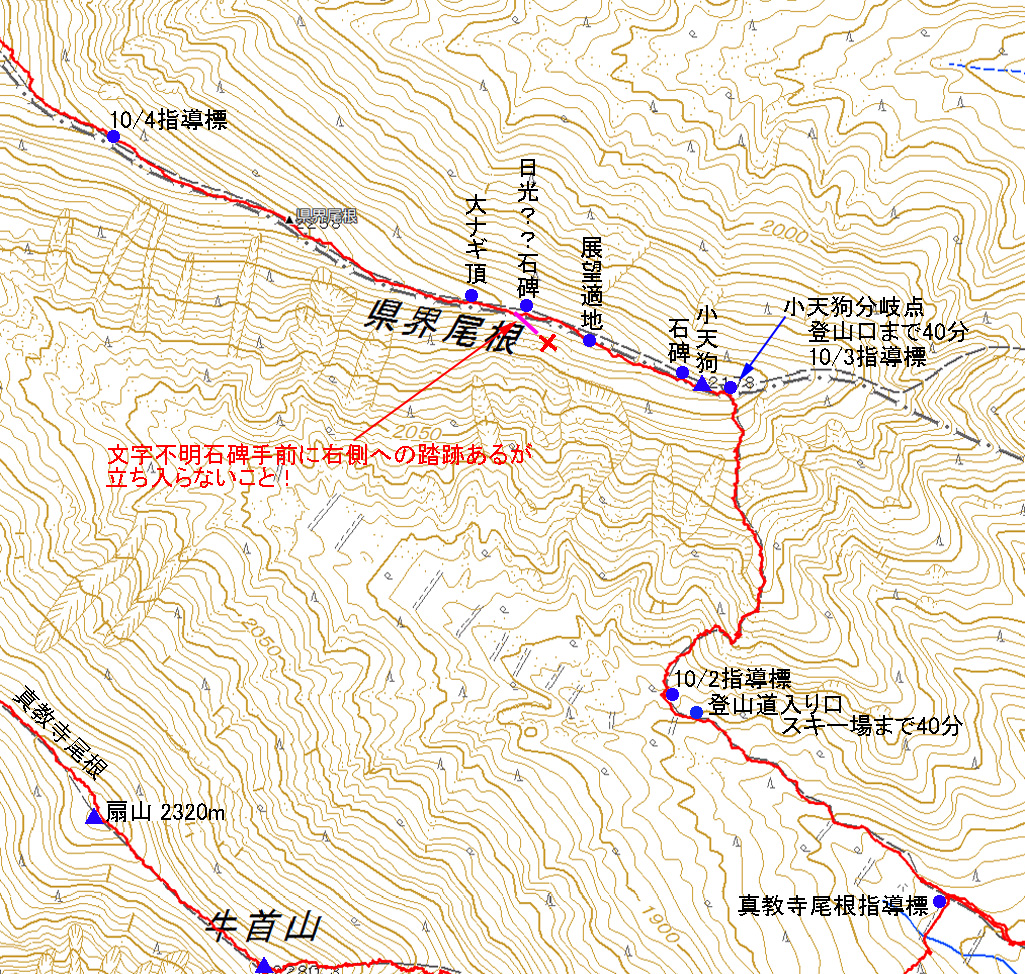 | 県界尾根登山口〜真教寺尾根拡大MAP | ||||