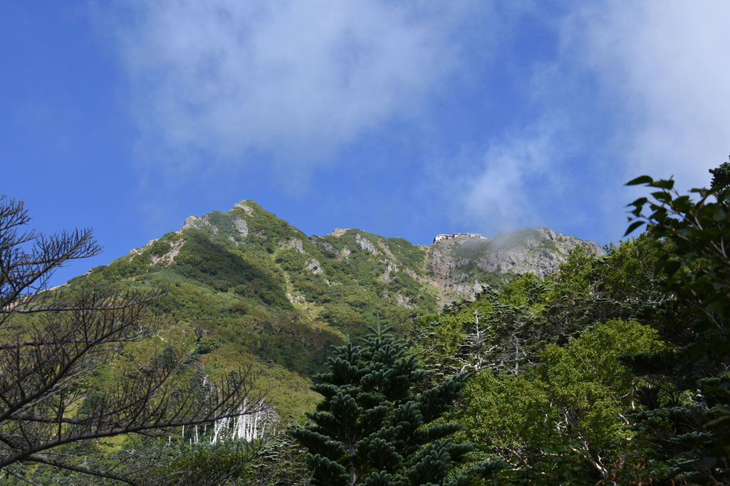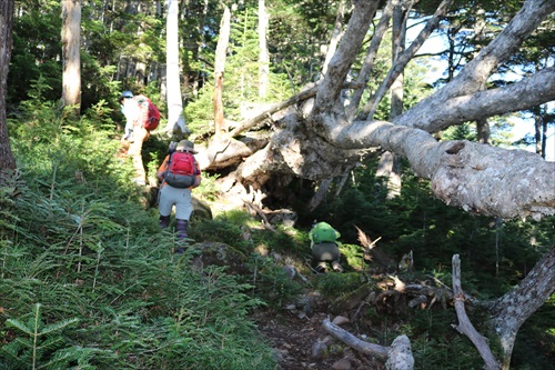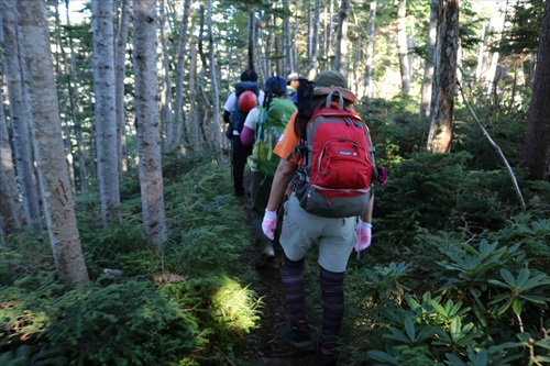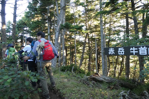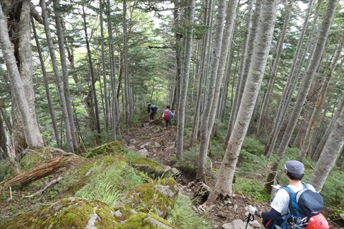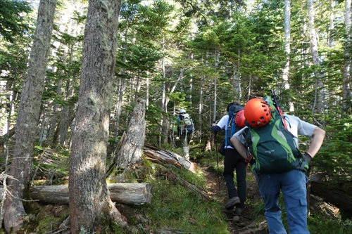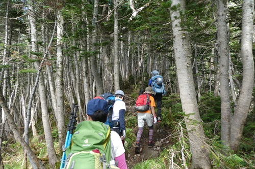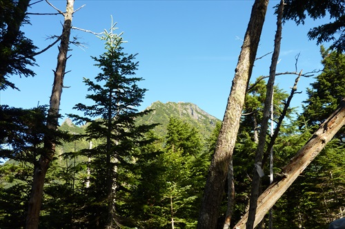 | 樹林帯を進むと隙間から赤岳の山頂が | ||||