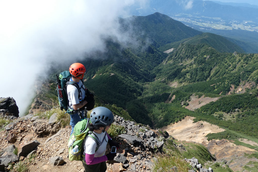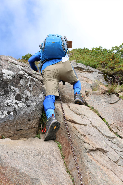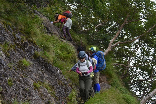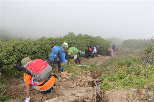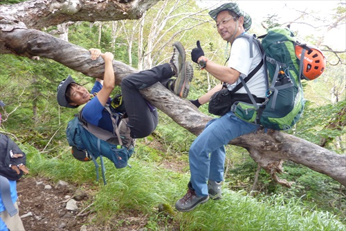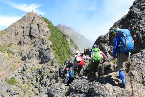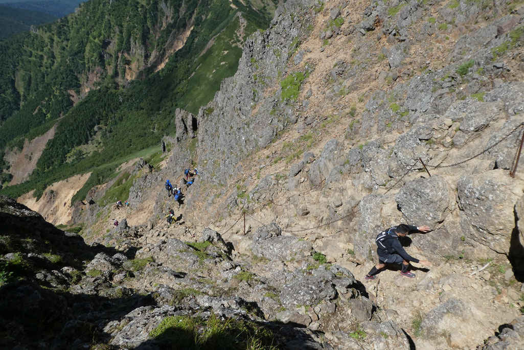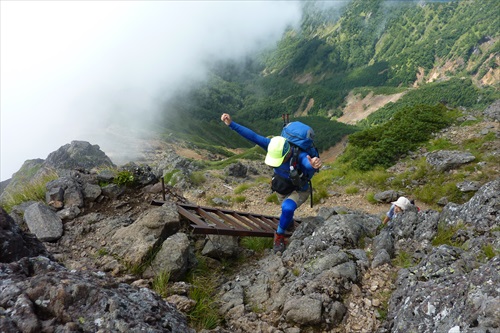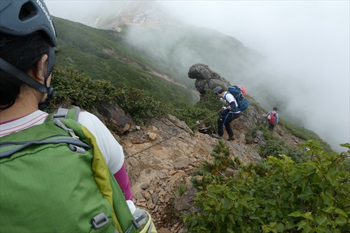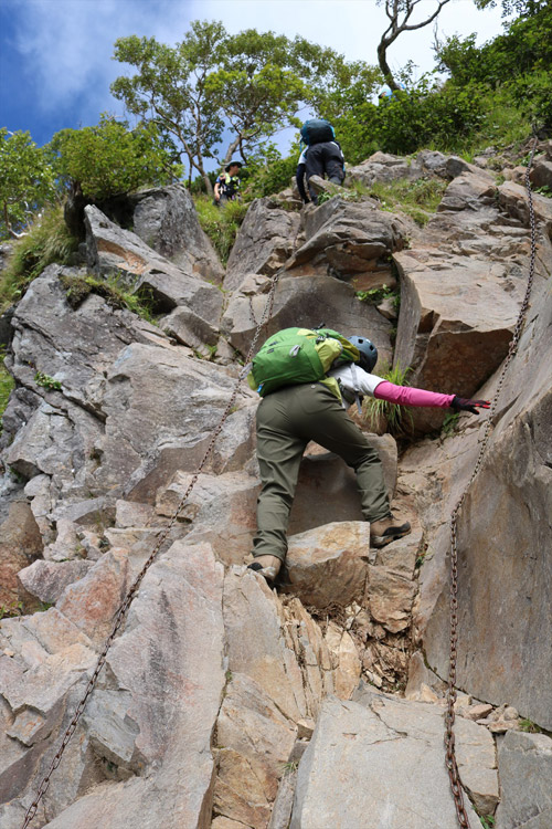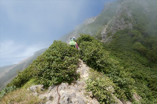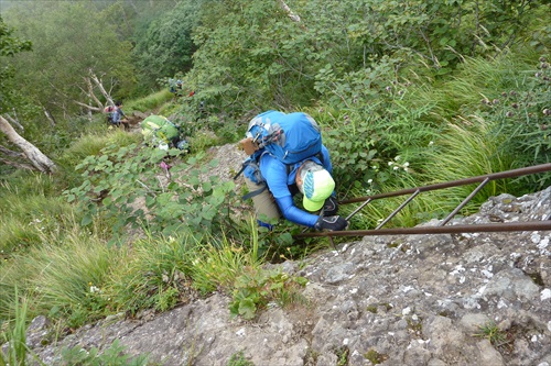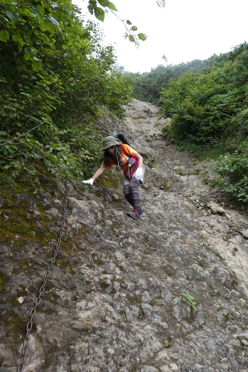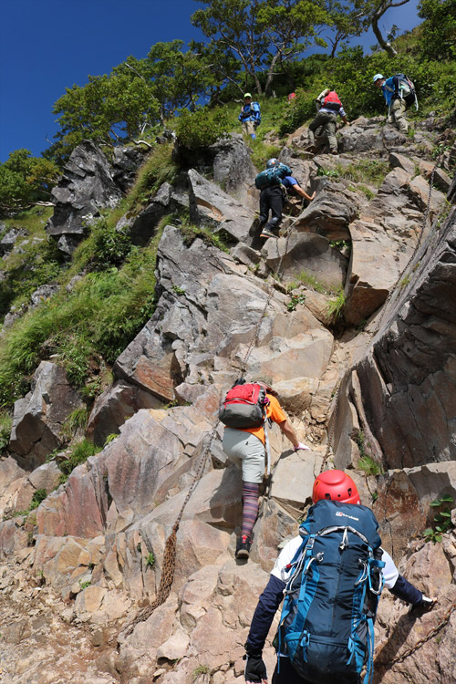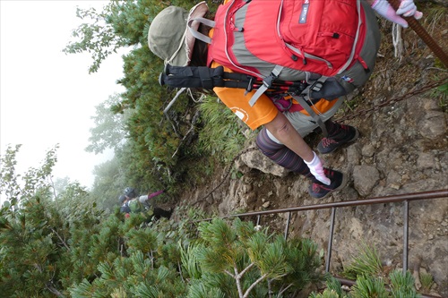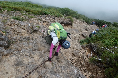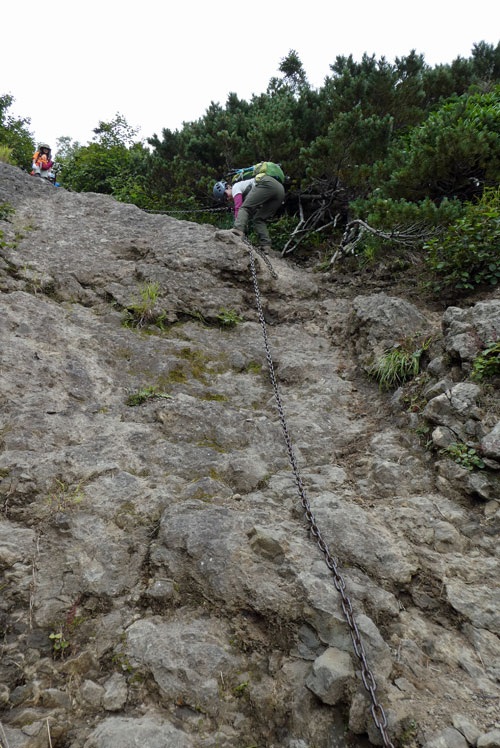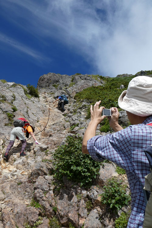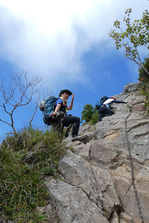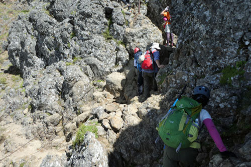 | ここは降りる人! 登る人! の調整で大渋滞でした レンレンさん・でこちゃん 三点支持でスイス〜イ! 両神山クサリワールドの経験が役にたっていますね〜♪ |