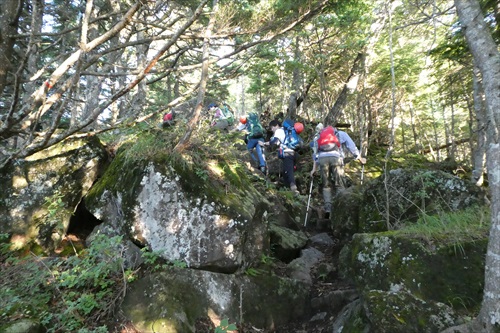 | この辺から赤岳へ向けて急登となるので急がず慌てずマイペースで | ||||