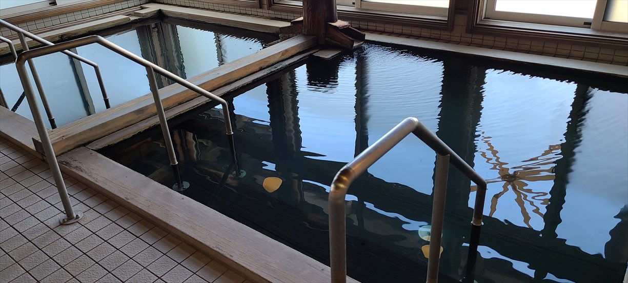 | 10時10分 アルパこまくさ 内湯 一番風呂だったので沈殿している温泉成分に自分の足跡がくっきり(笑) 泉質満足度 管理人☆☆☆ |