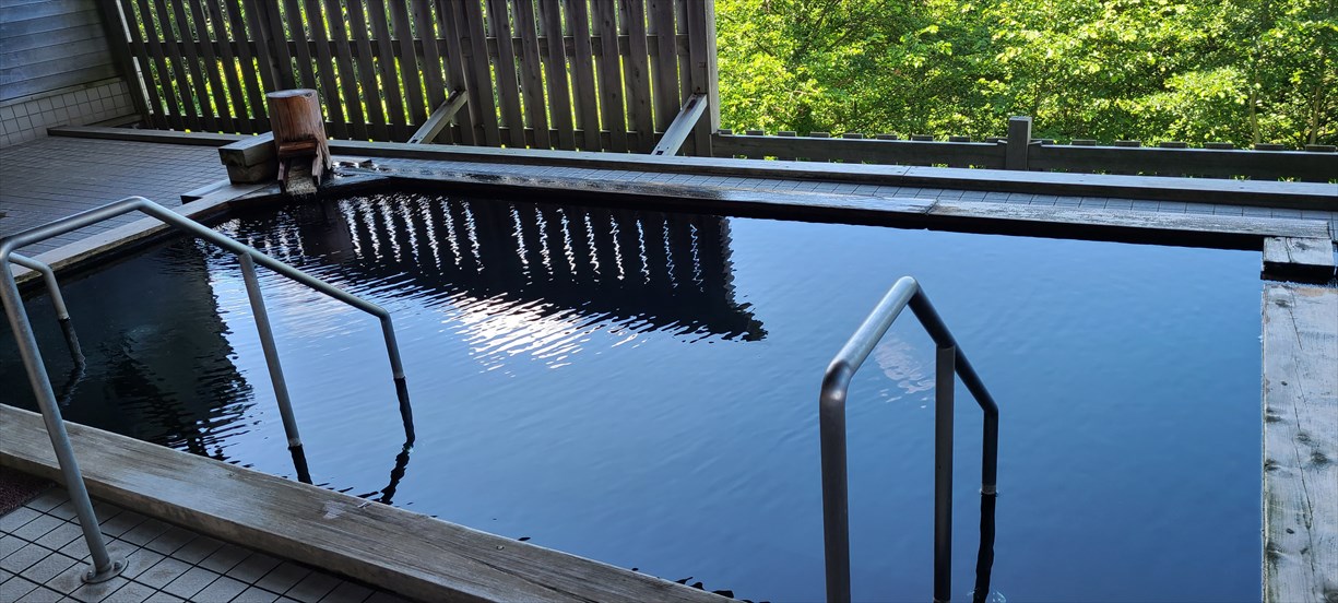 | アルパこまくさ・露天風呂 一番風呂だったので沈殿している温泉成分に自分の足跡がくっきり(笑) 泉質満足度 管理人☆☆☆ |