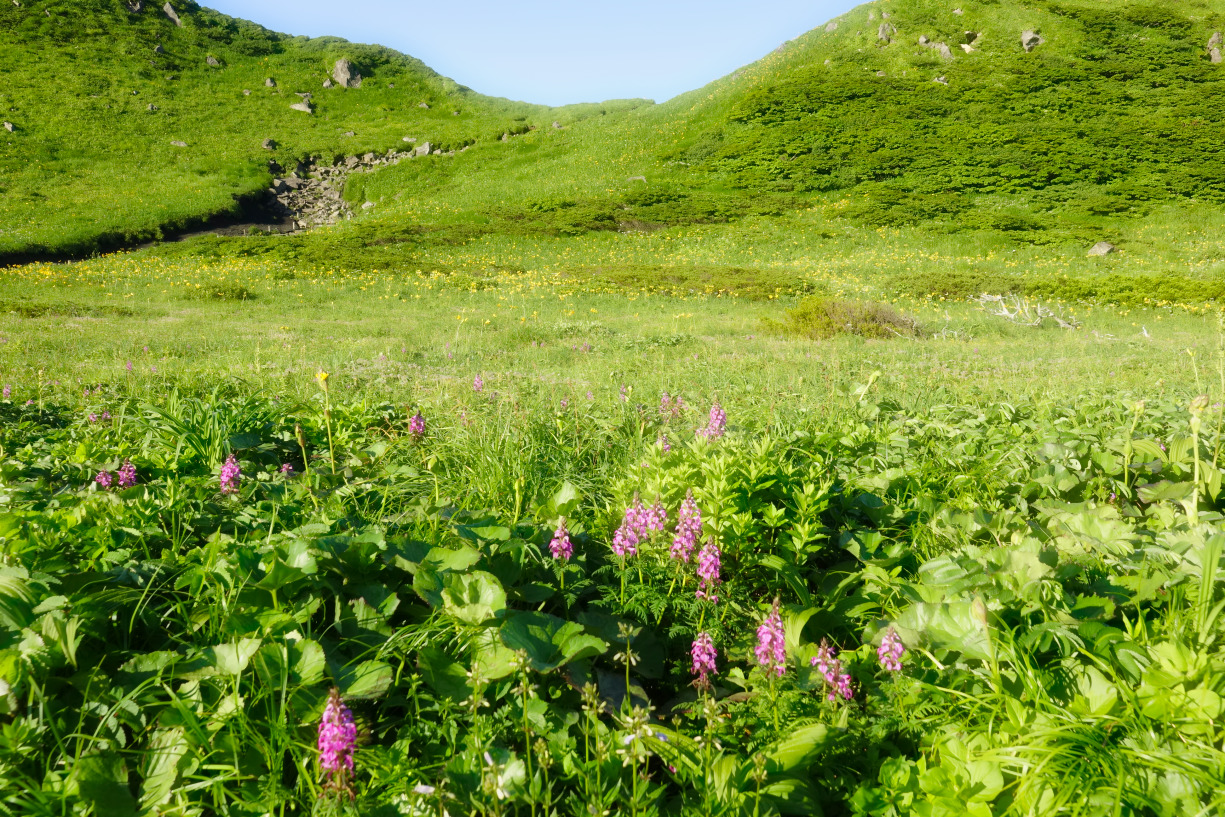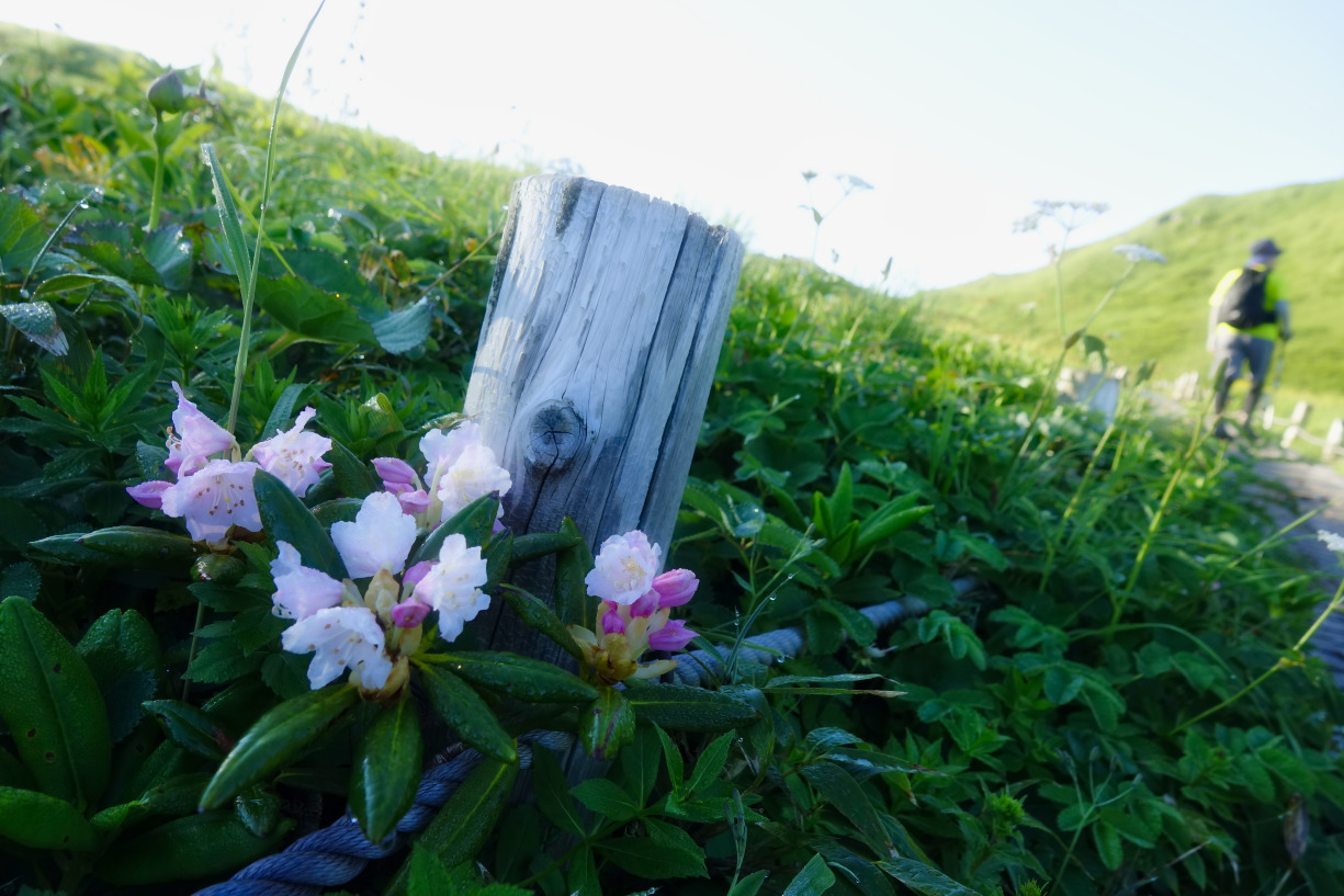| 横岳に戻る ムーミン谷まで降りて男岳から横岳までの岩稜歩きで周遊する予定だったが花の盛りが過ぎていたので大焼砂でUターン |