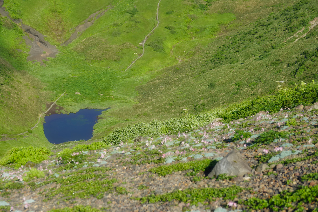 | 阿弥陀池と秋田駒ヶ岳(男女岳)山頂 | ||||