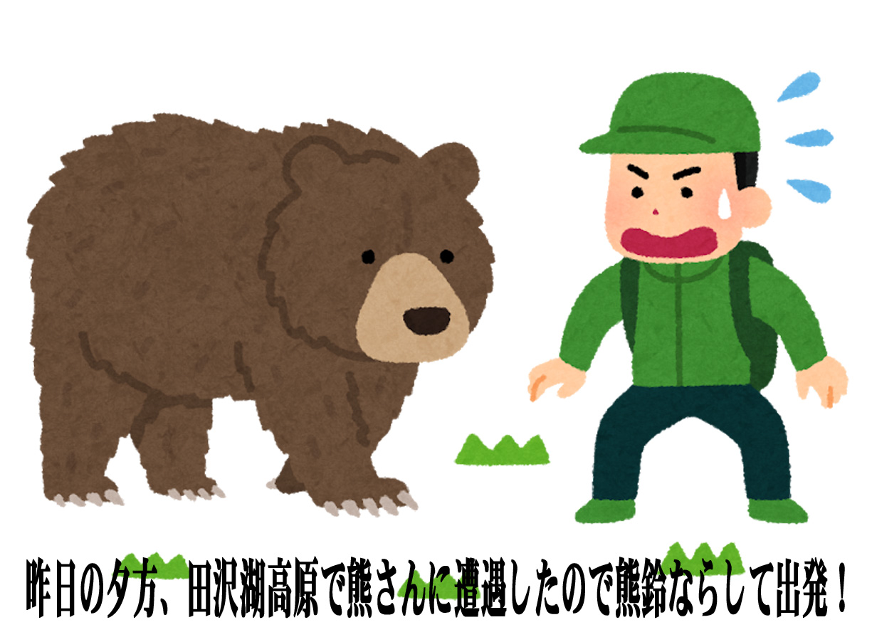 | 車道走行中に熊さんに遭遇! ホテルや民家が建つなかだっただけにビックリ! | ||||