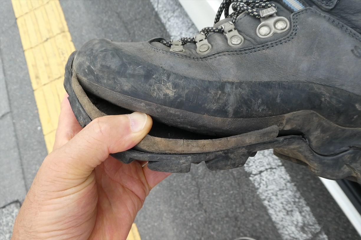 | 家内の登山靴が経年劣化でベロンチョ! 予定コースを短縮して正解だった (^O^)v | ||||