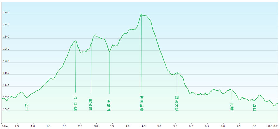 駐車場標高/1050M 標高差/356M 総歩行距離/8713M |