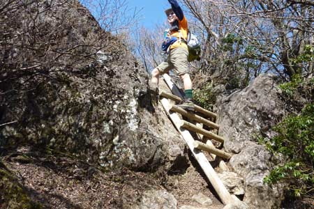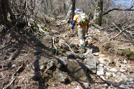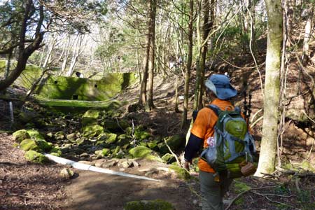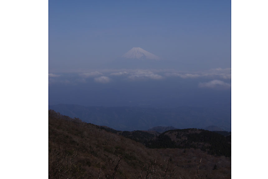 富士山展望の岩場より馬の背(手前)・万三郎岳(中央頭だけを望む) |