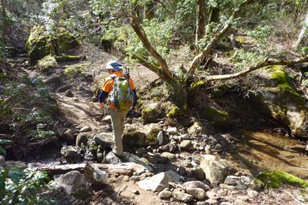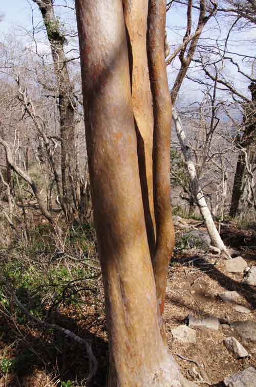 ヒメシャラの木肌に触れるとヒンヤリして気持ちよい♪ |
