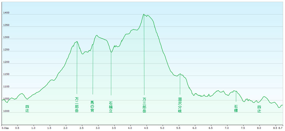 駐車場標高/1050M 標高差/356M 総歩行距離/8713M |