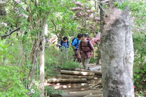 アマギシャクナゲの樹林帯に突入 |