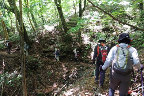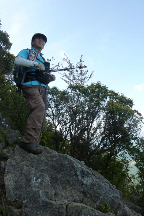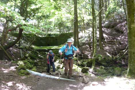 膝痛が芳しくないためWストックでユックリ登る爺 |