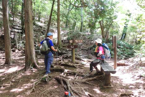 万三郎下分岐点からは長〜い木段を下りる |