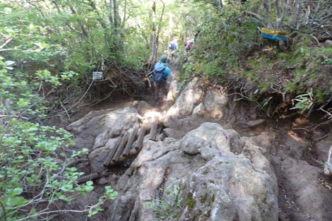 大勢の登山者で賑わう登山道 |