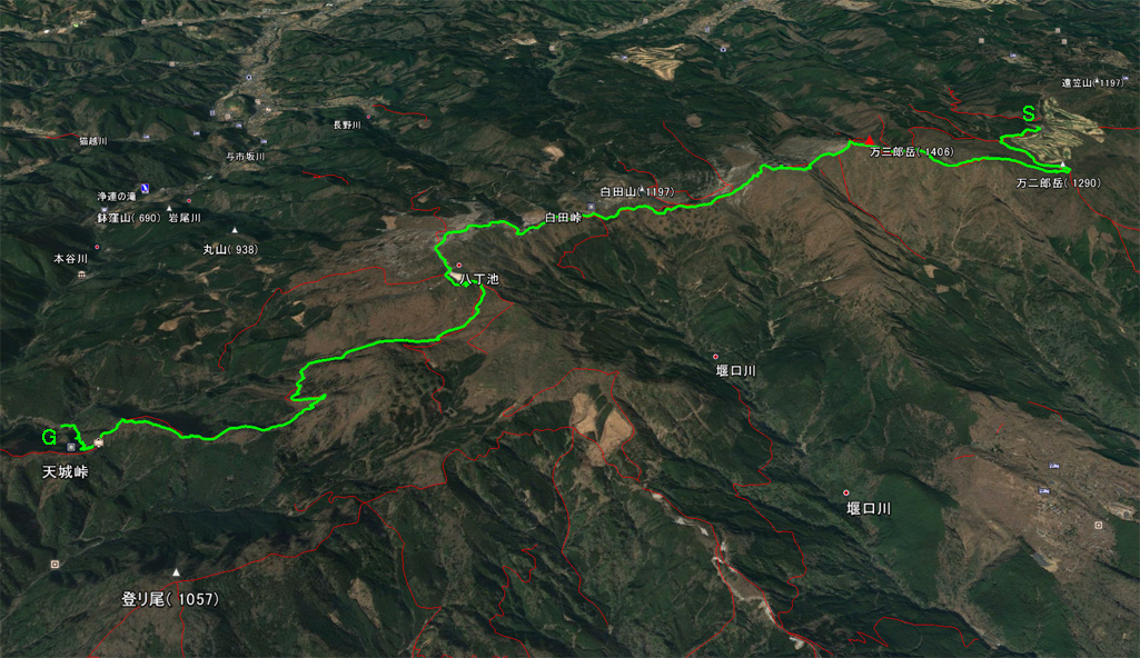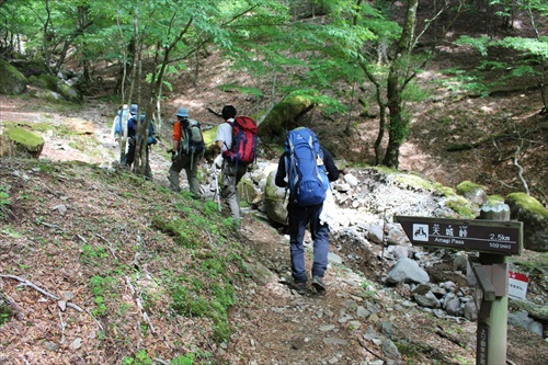 | 水生地下駐車場標高/606m 登山口標高/1050m 標高差/799.3m 累積標高/1216m 総歩行距離/18825m | ||||