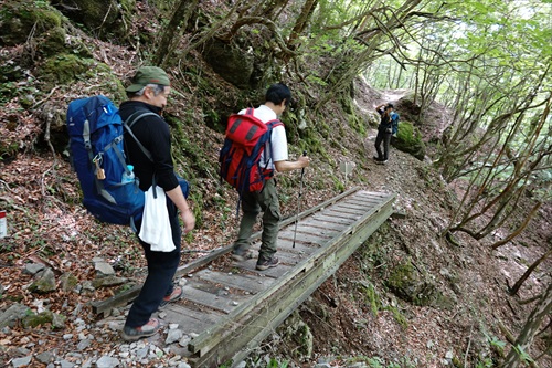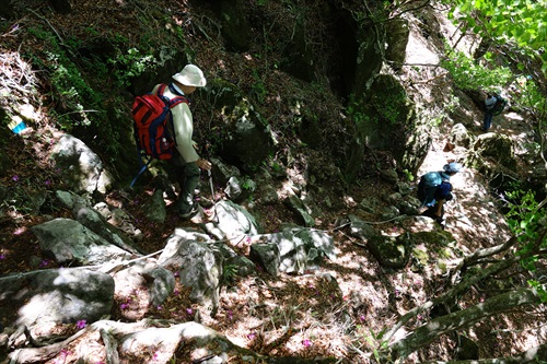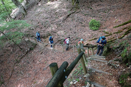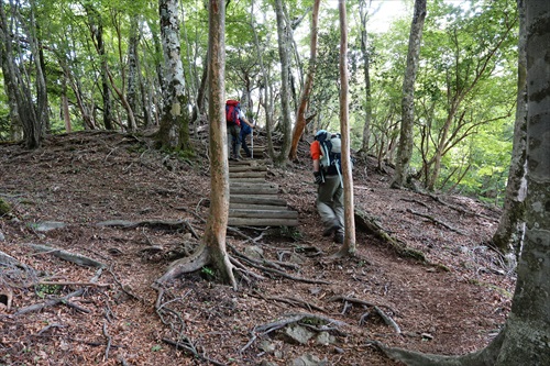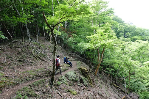 | ロープが張られた激下り1箇所と→ | ブナ林の激下りも1箇所あります | |||