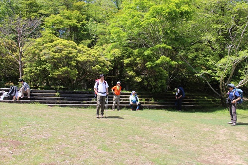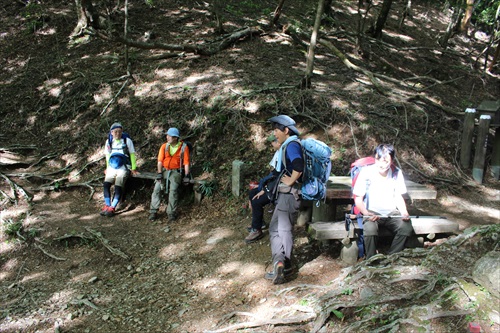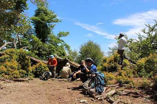 | 山頂の混雑を避け万三郎岳下分岐点近くで軽食タイム | ||||