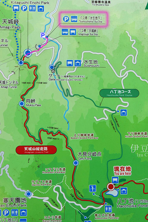| 天城峠まで6.0`・八丁池まで0.3` | ||||