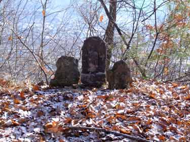 左に折れ平坦な道からガレ場を過ぎた場所に頭が欠けてしまって痛ましい姿の
