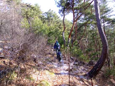 山頂へ行くには岩壁の上部を歩くようになるが、特に危険な場所は無くルート中で