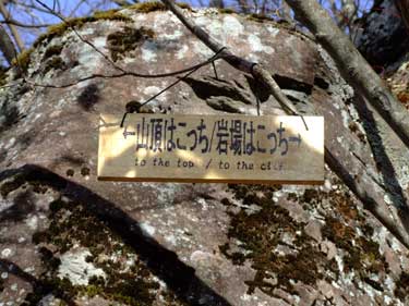 「←山頂はこっち・岩場はこっち→」の案内板に従って岩壁を楽しむのも良いだろう。