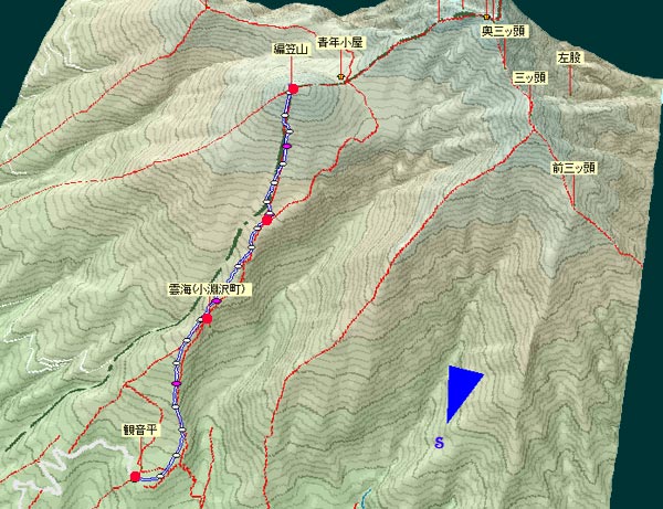 編笠山・観音平ルートの解説 |