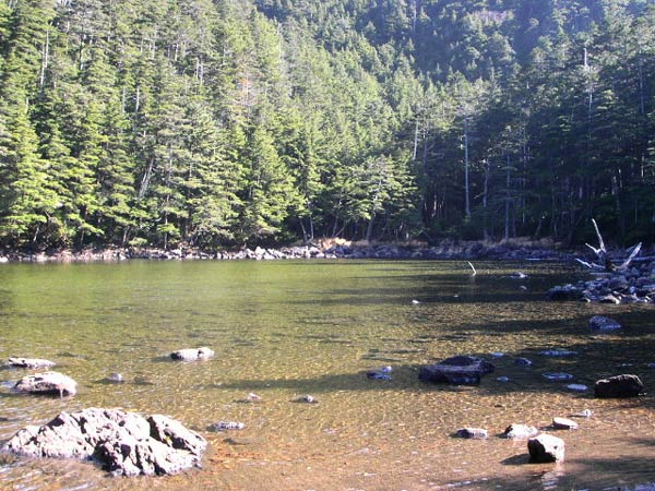 雨池と縞枯山 |
