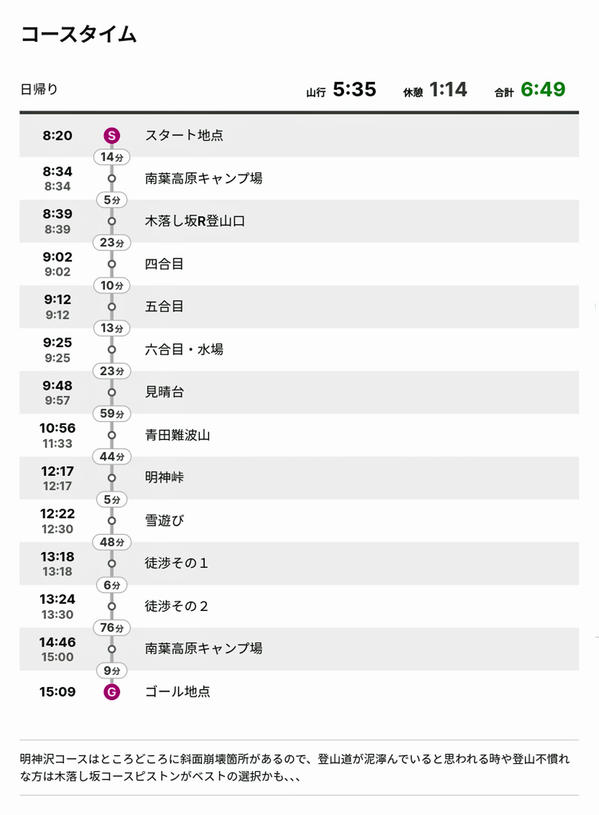 | 残雪などでルートをロストする可能性大なので紙地図・コンパス・GPSは必須 | ||||