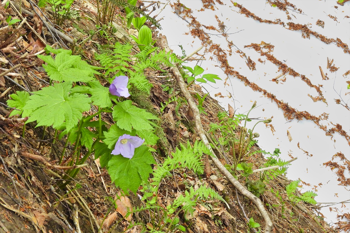 | 写真前後するがシラネアオイは上記写真の中間点で沢山咲いていました 花言葉「完全な美」 |