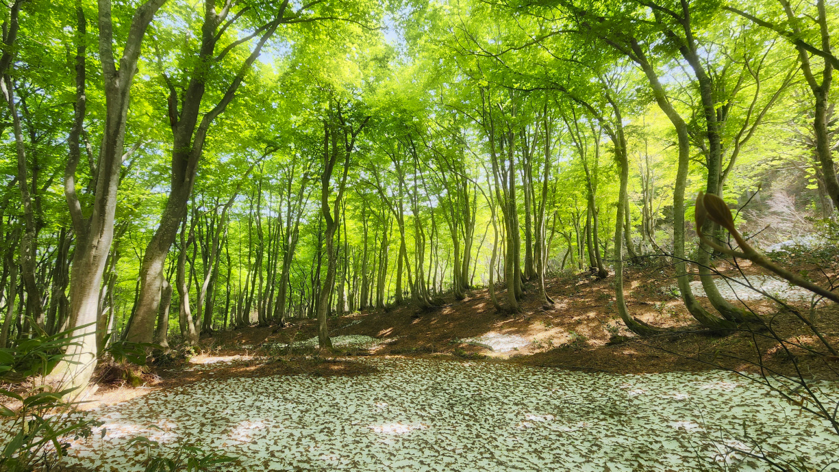 | 一昨年5月11日訪問時はこの辺からの残雪に悪戦苦闘したが今回は超楽ちんなのだぁ(^O^)v | ||||