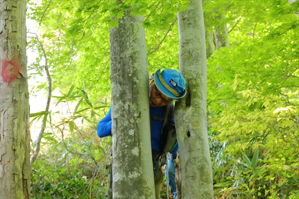 | 明神峠 明神沢Rはロープで止めてあったが仲間と相談のうえ強行突破 |