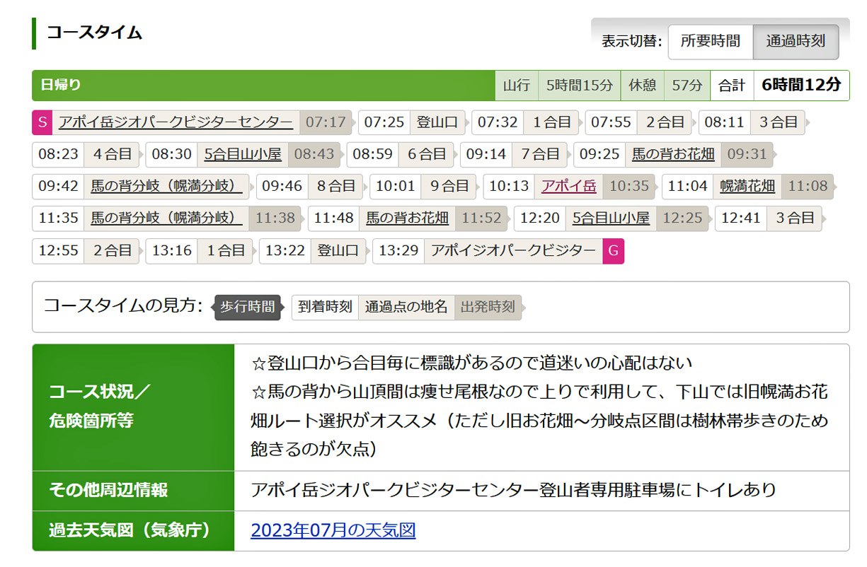 | 《アポイ岳コースタイム他》 写真撮影時間20分〜100分含む |