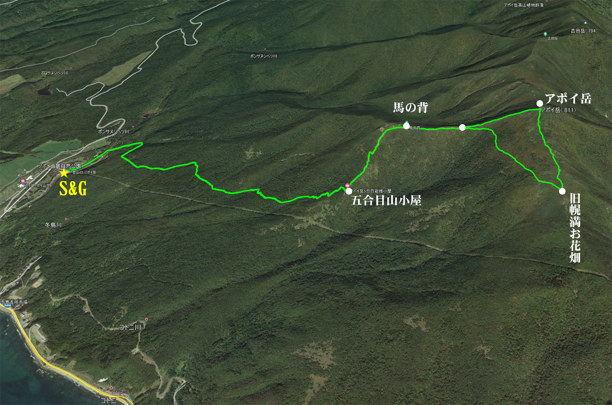 | アポイ岳鳥瞰図 ヤマレコ⇒https://www.yamareco.com/modules/yamareco/detail-5722989.html |