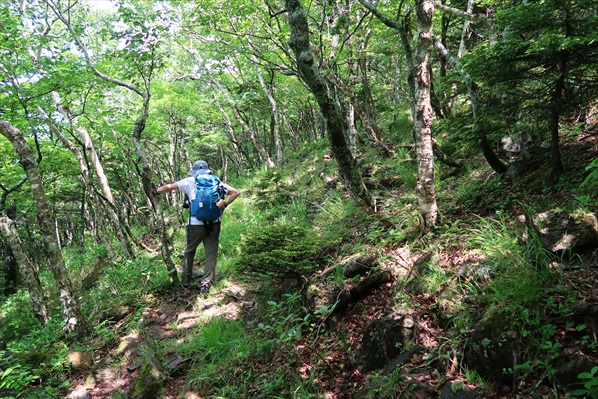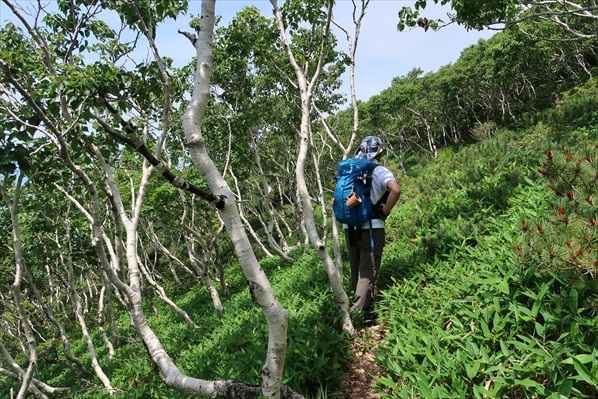 | 山頂中腹を水平に巻いて旧幌満お花畑分岐点へ向かうが長〜いダラダラ道で飽きる! | ||||