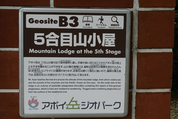 | ジオパークビジターセンター建物横を直進 | 前方の小屋付近で入林届け記載 | |||