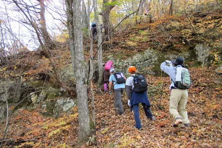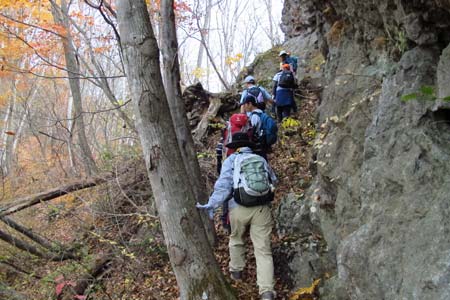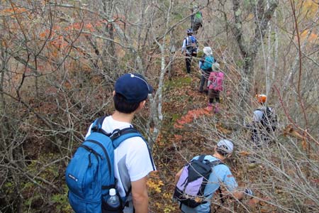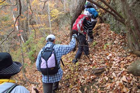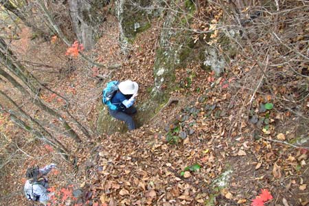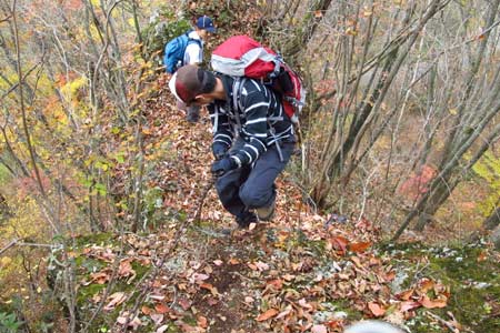落ち葉が多く踏み跡不鮮明だが尾根筋を外さないよう慎重に登り込む |