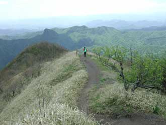 ■浅間隠山は倉渕町・吾妻町・長野原町にまたがる名山。 浅間高原を見下ろす独立峰で、頂上は森林限界を抜けた草地のため展望がよく、 関東平野からよく見える秀麗な山として知られてきました。 ■近ごろ浅間隠山に登る人が急激に増えて、昔は日曜日に登山者4,5人だった山が、 いまは道路わきの駐車スペースがあふれて探すのに困るほどとなり、 ツアー会社がバスで団体を連れてくる山に変貌しました。 ■登る人が増えるにつれて山頂に問題が生じてきた。 昔は草地に細い踏み跡が一本あるだけの山頂だったが、休憩で草地に踏みこむ人で裸地化し、 しだいに傾斜した浅間高原側まで裸地が広がり始めた。 このまま推移すると雨による侵食が土砂を流して荒れ果てた山頂になることは間違いない。 たとえば、…… 近くの鼻曲(はなまがり)山山頂は裸地化が進んで一部に崩壊がみられるのも、、 赤城山の長七郎岳山頂の小沼側斜面がえぐられてひどいガラガラの斜面に変わっているのも、 やはり草の踏みつけー裸地化ー侵食、によるものであろう。 山便り「浅間隠山の保護」より抜粋 |
