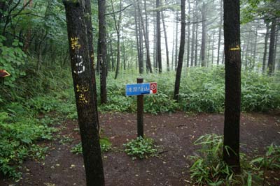 なだらかな尾根道をたどると北軽井沢ルート手前分岐点に出る。