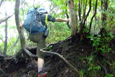 植生保護の為か、登山道も必要最小限の刈り込みしかされておらず藪漕ぎに近い場所もあったが、