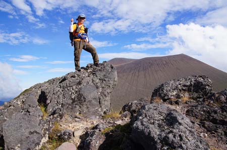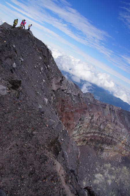 火口縁に沿って歩く |
