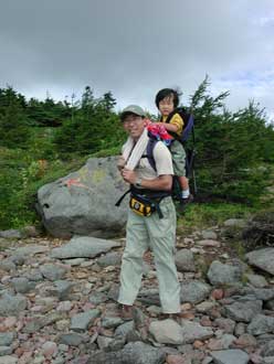 聡太君をリュック代わりに足慣らしを兼ねて四阿山に登りました。