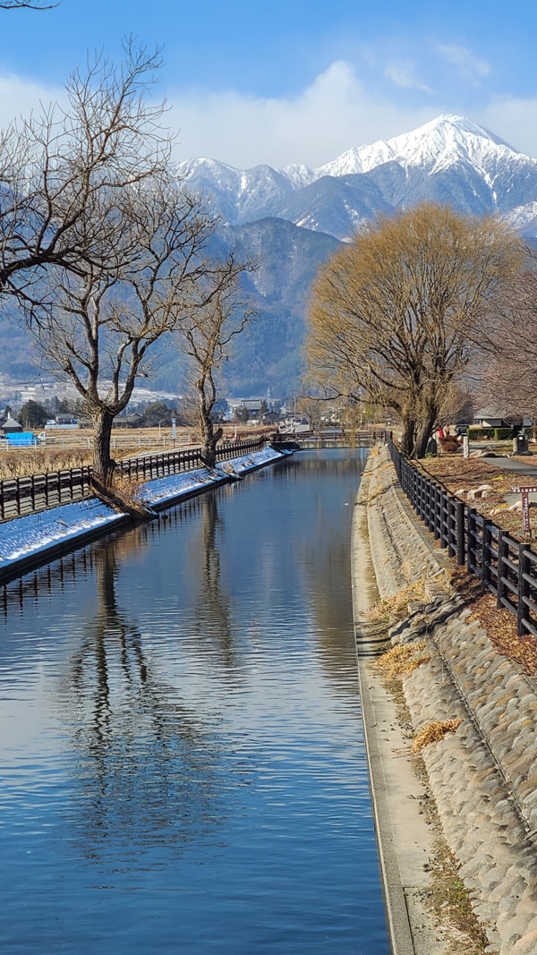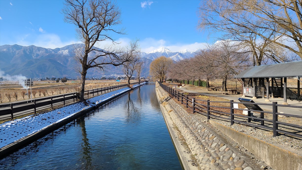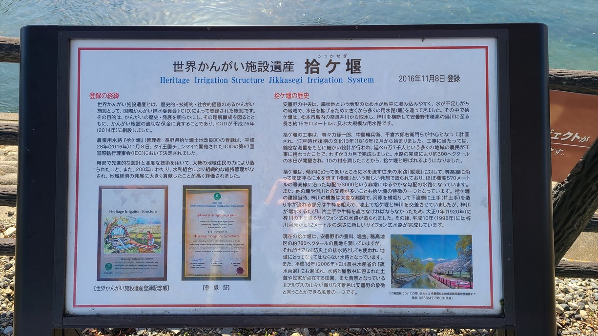 世界かんがい施設遺産・拾ヶ堰(じっかせぎ)と常念岳