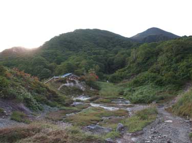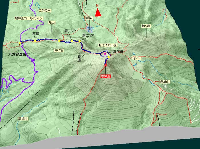 | ★行程&所要時間 長野発 19:40 〜上信越道〜北陸道〜磐越道〜(23:30 新鶴PAで仮眠)〜 磐梯河東IC 3:40 (深夜割引料金・4500円) 〜 セブンイレブンで食料調達 〜 磐梯山ゴールドライン(通常730円だが早朝通過で無料) 〜 八方台登山口駐車場着 4:20 (仮眠) 八方台駐車場発 5:45 〜 石祠 5:49 〜 中ノ湯跡 6:10 〜 第一VP 6:26 〜 第二VP 6:37 〜 お花畑分岐点 7:12 〜 弘法清水小屋分岐点 7:20 〜 磐梯山山頂着 7:47 山頂発 8:00 〜 弘法清水小屋 8:20(朝食・15分) 〜お花畑周遊〜 お花畑分岐点 8:48 〜 第二VP9:13 〜 第一VP 9:19 〜 中ノ湯跡 9:33 〜 八方台駐車場着 9:50 裏磐梯のセブンイレブンで明日の食料とビールを仕入れて奥岳温泉にある「富士急・あだたらスキー場」を目指す。 |