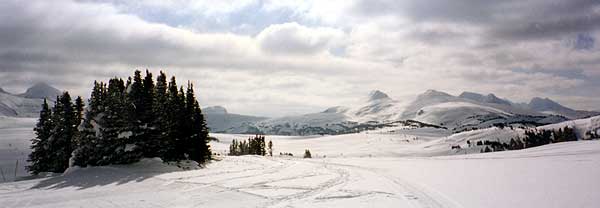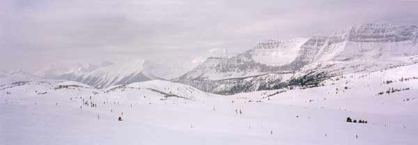 | レイクルイーズ・マウントノーケー・サンシャインを滑りましたが、ページの都合上 サンシャインのみの掲載となりました。 この日はマイナス30°とバンフ滞在中で一番寒い日でした。 この広さと距離があるので1本滑れば身体が暖まるはずなのに・・・ −30°は甘くなかった。(*_*) |