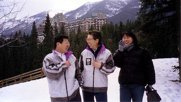 | NAGANO冬季オリンピックが開催された年、仲間4人でバンフへ行った時の写真をスキャ ンして掲載しました。 バンフの各ゲレンデを体験してみれば、ウィスラーのロケーションの良さを実感できますが 何事も経験でしょうか。 |
