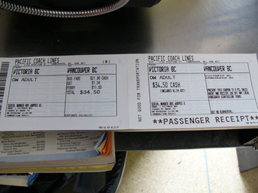| ビクトリアのアクセス方法 バンクーバー市内からバンクーバー島のビクトリアへ行くには飛行機・水上飛行機・ジェットヘリ フェリー・長距離バスのパシフィックコーチライン(PCL)などがある。 ビクトリアへは水上飛行機での往復が定番だったが、前回のナナイモ以来フェリーにハマッてしまい 今回は往路・水上飛行機、復路・PCL&BCフェリーを利用する。 ただしフェリーを利用する場合は所要時間が片道約三時間半もかかるので、ビクトリアをゆっくり 見学したい方は水上飛行機を利用するか、フェリー往復利用でお金が浮いた分ビクトリアで一泊して アフタヌーンティー等を楽しむのも良いだろう。 カナダプレイス横のハーバーにある水上飛行機会社「ハーバーエアー」で翌日のフライト予約をするが 希望時間の7時台・2便は満席だった。 隣の会社「ウェストコーストエアー」に8時ジャストの便に空きがあったので確保するがビクトリアでの 行動時間を考えると7時台で向かいたかった。 予約にはパスポート&自宅の電話番号が必要だ。(まれにステイ先のホテル名も聞かれる) 当日はフライト30分前までにチェックインと支払いを済ませると、目的地別色付きカードとチケットを 渡してくれる。 搭乗時間になるとアナウンスがあるので乗り場係員にカードを渡して乗り込む。 スタンレーパークや飛行場、バンクーバー島の小島群を眺めながら約30分のフライトでビクトリアの インナーハーバーに着く。 眼前にはフェアモント・エンプレスホテルやBC州議事堂など優雅な建物が並び、観光用のクラシカル な白馬車が止まっていたりと英国テイストが漂いバンクーバーとは全く違った雰囲気を味わえる。 帰りはフェアモント・エンプレスホテルの南側、Belleville St.と Douglas St.の 交差点角に建つPCLバスディーポでバンクーバー行きのチケット(バス代フェリー代込み)を購入。 PCLはバスごとフェリーに乗り込むのでバンクーバー市内まで乗り換え無しで帰れる便利さがある。 バス乗り場の支柱には行き先ごとの案内板があるので事前にチェックしておくと安心だ。 待合室にいるとアナウスが入るのでバス運転手にチケットを渡すと半券を返してくれ、乗車後は スワーツ・ベイBCフェリーターミナルまでノンストップ約35分のドライブだ。 フェリー内では同型バスが多いので下車する際は乗ってきたバスの番号をメモしておこう。 (他の交通網を利用してフェリーに乗った人でもフェリー内でPCLチケットの購入ができる) 港到着10分前にアナウンスが入るので再度チケットを見せてバスに乗り込む。 エアポートターミナルを過ぎると主要な場所でアナウスが入りダウンタウンエリアでの下車も可能。 今回は終点のパシフィックステーションまで行き、スカイトレインを利用してダウンタウンへ戻る。 「旅行中はいろいろな場所でパスポート確認があるので常に携行しましょう。」 mikio ☆ バンクーバー No 1 / バンクーバー 9月 / ナナイモ 9月 にチケットの写真を掲載 〜〜〜〜〜〜〜〜〜〜〜〜〜〜〜〜〜〜〜〜〜〜〜〜〜〜〜〜〜〜〜〜〜〜〜〜〜〜〜〜〜〜 行 程 ★前日(2006.3.2)にWESTCOAST AIRの水上飛行機を予約(要パスポート) ★カナダプレイス横のハーバー発で所要時間約30分・乗員数が限られるので事前予約がベスト ★2006.3.3 AM7:27 フライト30分前にチェックイン バンクーバー発 AM8:00 〜 ビクトリア インナーハーバー着 AM8:35 ビーコンヒル公園・ミニチュア博物館・ろう人形館等約3時間のビクトリア市内観光後、 ★PCLバスディーポ発 PM12:00 〜 スワーツ・ベイBCフェリーターミナル着 PM12:35 (PCLバス内で待機後バスごとフェリーに乗船) BCフェリーターミナル発 PM13:00 〜 港到着10分前ごろ同じバスに乗車 〜 バンクーバー・トゥワッセン港着 PM14:35 〜 エアポートバスターミナル・ダウンタウンを経由 〜 スカイトレイン・メイン駅横パシフィックステーション着 PM16:00 エアポートバスターミナル以後はバス運転手がアナウンスする場所で下車可能です。 PCLバス下車後、メイン駅よりスカイトレイでダウンタウンへ向かう。(所要時間10〜15分) 料 金 水上飛行機 121.98ドル PCLバスチケット 34.50ドル(バス代21.96 フェリー代11.00 税金1.54を含む) スカイトレイ・1ゾーン代 2.25(90分利用可) 時刻表や料金は季節・年度で変わる可能性がありますので詳しくは各社のHPでご確認下さい。 2006.2.23現在の1カナダドルTC為替は手数料込みで106円 〜〜〜〜〜〜〜〜〜〜〜〜〜〜〜〜〜〜〜〜〜〜〜〜〜〜〜〜〜〜〜〜〜〜〜〜〜〜〜〜〜〜 水上飛行機時刻表・PCLバス時刻表・BCフェリー時刻表は各社ホームページを参照 WESTCOAST AIR HARBOUR AIR SEAPLANES (水上飛行機) カナダプレイス横ハーバー発で所要時間は約30分・乗員数が限られるので事前予約がベスト PACIFIC COACH LINES(略式名PCL・トイレ付き長距離バス) バスごとフェリー乗車し目的地まで行く事ができるので便利 BC Ferries (BCフェリー) TRANS LINK (バス・スカイトレイン・シーバス) スカイトレインは複線になっており2〜3分間